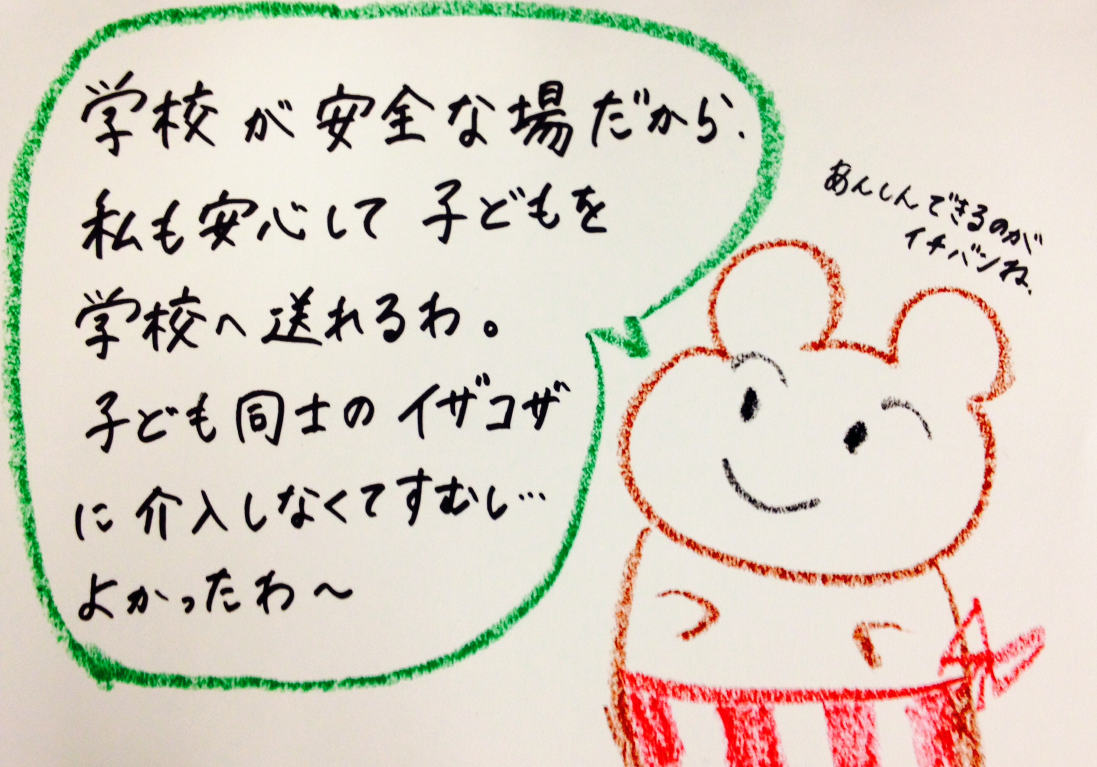 子ども達の問題行動が減少することで、学校がより安心、安全な場所になります。 そのため、学校に対する信頼が強まり、子どもを学校へ送り出す不安感や心配が軽減します。